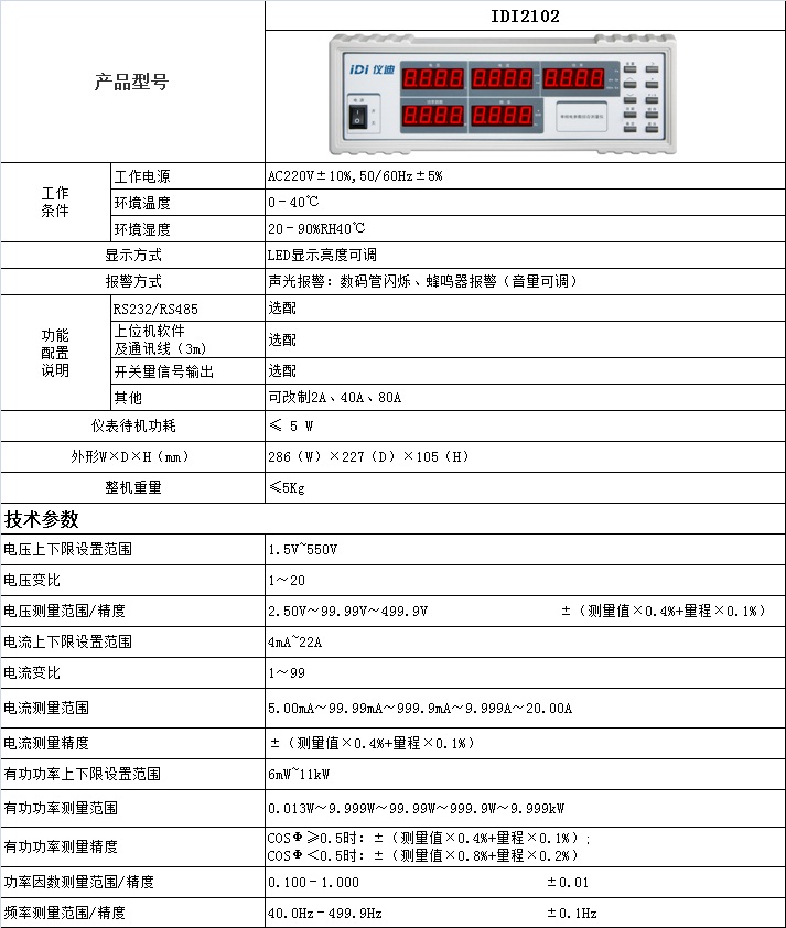 西寧單相電參數綜合測量儀-IDI2102-儀迪