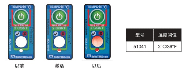 DeltaTrak提供滿足你各種需要的標簽:WarmMark溫度標簽、高溫熱標簽和TempDot時間溫度指示標簽顯示溫度變 化超過預設的時間。FreezeCheck和ColdMark溫度標簽用于顯示運輸溫度低于0℃。商業(yè)洗碗機使用的TempDot高溫熱標簽可顯示最終沖 洗水溫是否達到71℃(HACCP體系所要求的溫度)。 TempDot Minus 指示標簽是用于檢測溫度下降的凍結指標。它們被用來作為“合格”或“不合格”的判斷指標,用于觀測不能被凍結的產品,如某些食品、疫苗、藥物、血液制品、植入物、診斷物質、眼用溶液、眼內透鏡和化學品等。 TempDot Minus 指示標簽是用于檢測溫度下降的凍結指標。它們被用來作為“合格”或“不合格”的判斷指標,用于觀測不能被凍結的產品,,如某些食品、疫苗、藥物、血液制品、植入物、診斷物質、眼用溶液、眼內透鏡和化學品等。