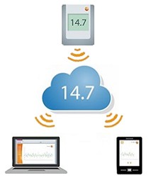 要想使用testo Saveris 2 WiFi溫濕度記錄儀 2,你需要德圖云服務(wù)器使用許可證。因?yàn)槟闼械臏囟群蜐穸葴y量數(shù)據(jù)都存儲(chǔ)在德圖云服務(wù)器上。只要通過德圖云服務(wù)器,你就可以從任何地方調(diào)用你的測量數(shù)據(jù),并且在測量數(shù)據(jù)達(dá)到臨界值時(shí)接收到警報(bào)。