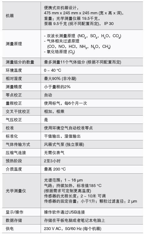 特點(diǎn) • 更長(zhǎng)的測(cè)量光程(是非分散紅外分析儀的7倍),經(jīng)濟(jì)型煙氣分析儀,更準(zhǔn)確的測(cè)量值 • 整個(gè)氣路沒有去除水分,測(cè)量組分沒有任何損失 • 小體積的移動(dòng)型紅外煙氣分析儀系統(tǒng)(不含冷凝器) • 多達(dá) 11 個(gè)氣體組分的連續(xù)型、抽取式測(cè)量 • 無需儀表氣 • 各組分經(jīng)現(xiàn)場(chǎng)測(cè)試驗(yàn)證、 現(xiàn)代光學(xué)測(cè)量科技 • 內(nèi)置采樣泵抽取 • 超長(zhǎng)運(yùn)行時(shí)間、高可靠性 • 直接在采樣點(diǎn)便捷的放置 • 經(jīng)預(yù)先校準(zhǔn) → 可立即使用 • 集成環(huán)境空氣的零氣供應(yīng) • 通過隨機(jī)軟件可視化和操作